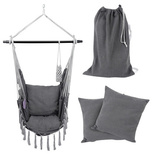 FOTEL WISZĄCY BRAZYLIJSKI OGRODOWY HUŚTAWKA HAMAK KOKON SZARY + PODUSZKI