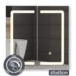 SZAFKA ŁAZIENKOWA WISZĄCA 65 x 65 CM Z LUSTREM OŚWIETLENIEM LED GNIAZDKIEM