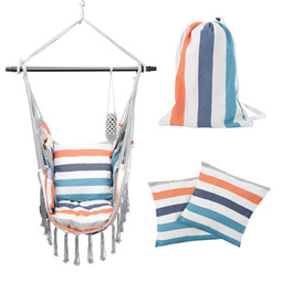 FOTEL WISZĄCY BRAZYLIJSKI OGRODOWY HUŚTAWKA HAMAK KOKON W PASKI + PODUSZKI