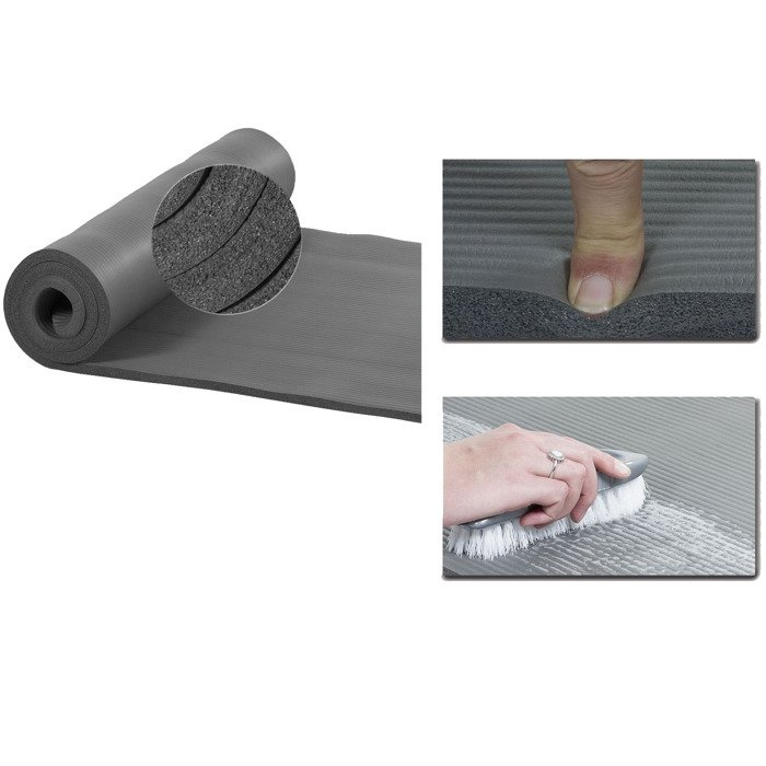 - Zmywalna powierzchnia pozwala na łatwe utrzymanie maty w czystości. Miękka gąbka zapewni komfort podczas ćwiczeń.
