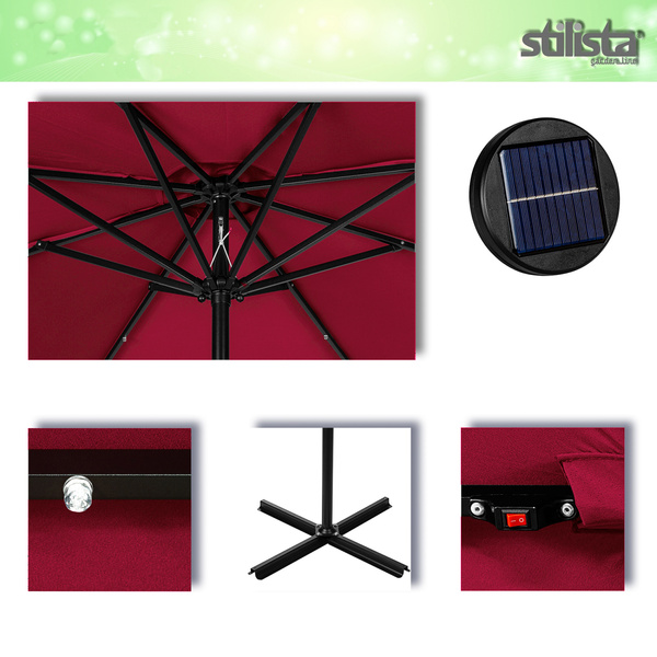 Parasol przeciwsłoneczny na wysięgniku marki STILISTA® wykonany jest z grubego i wytrzymałego poliestru 180g/m². Posiada oświetlenie LED, którym można sterować za pomocą włącznika/wyłącznika. Nasz produkt ma stabilną konstrukcję stalową, a mechanizm korbkowy sprawia, że w kilka sekund można go zarówno złożyć jak i rozłożyć bez wysiłku. Regulacja pochylenia czaszy oraz możliwość obrotu sprawia, że łatwo dostosujemy go do własnych potrzeb. Zintegrowany daszek wspomaga cyrkulację powietrza, który zapobiega gromadzeniu się ciepła jak i poprawia stabilność parasola. Dodatkowo pokrowiec zapewnia ochronę przed lekkim deszczem. Parasol marki STILISTA idealnie sprawdzi się na balkonie, tarasie lub w ogrodzie.