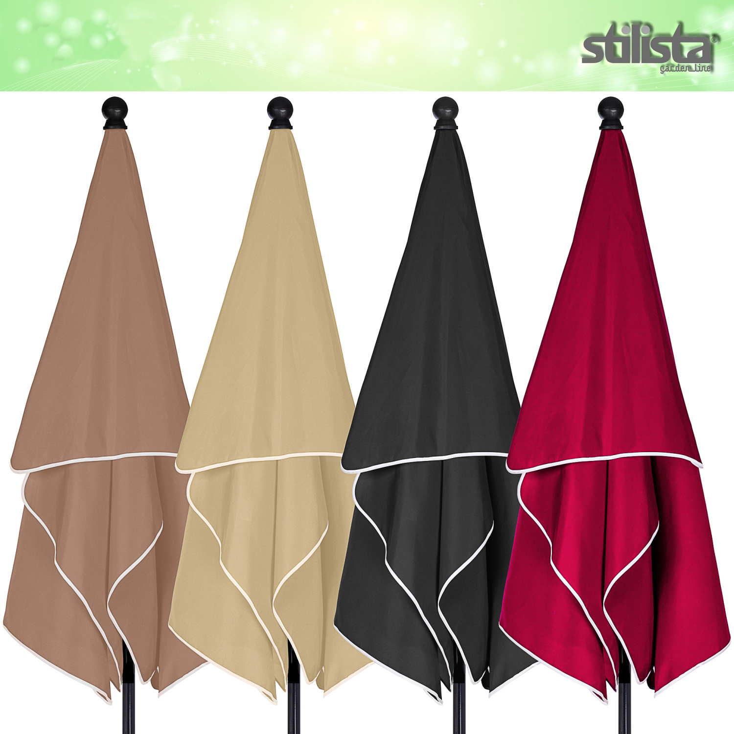 Parasol marki STILISTA® wykonany jest z grubego i wytrzymałego poliestru 160g/m². Nasz produkt ma stabilną konstrukcję stalową, który sprawia, że w kilka sekund można go zarówno złożyć jak i rozłożyć bez wysiłku. Regulowany kąt czaszy oraz możliwość obrotu sprawia, że łatwo uzyskać optymalny cień a dzięki zastosowaniu 4 ramion jest bardzo stabilny. Dodatkowo wodoodporny pokrowiec zapewnia ochronę przed lekkim deszczem. Parasol marki STILISTA idealnie sprawdzi się na balkonie, tarasie lub w ogrodzie.