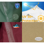 - Materiał dachu: wysokiej jakości oddychający poliester 300D 300g/m2 z podklejanymi szwami i dodatkową powłoką PVC