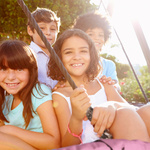 CECHY: Huśtawka dla wielu dzieci wyposażona jest w linę z możliwością regulacji wysokości (100-160 cm), stabilne paski, wyściełaną i składaną stalową ramę oraz miękkie siedzisko wykonane z tkaniny Oxford