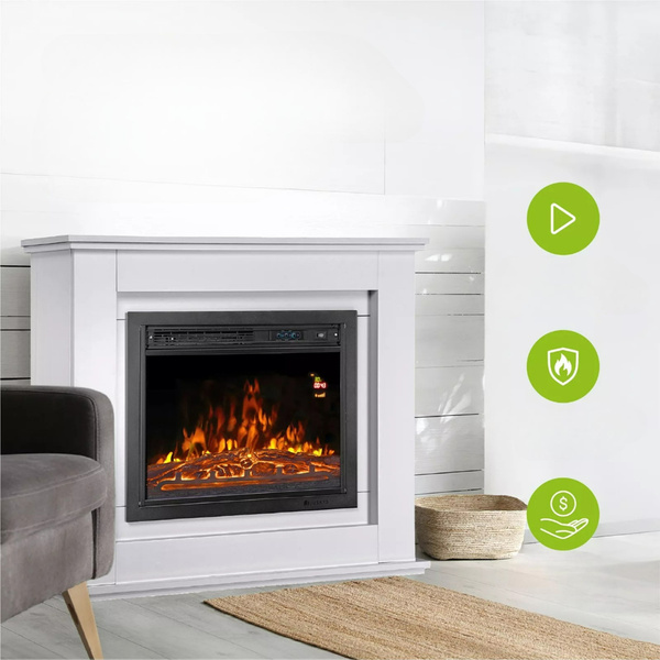 Biała, stylowa rama wykonana z MDF idealnie wpisuje się w nowoczesne i klasyczne aranżacje. Kominek można postawić w dowolnym miejscu z dostępem do gniazdka – nie wymaga żadnych przeróbek ani montażu kominów.